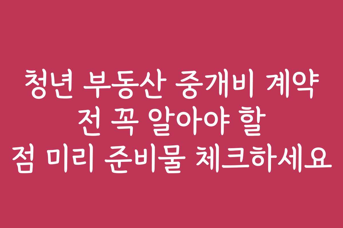 청년 부동산 중개비 계약 전 꼭 알아야 할 점 미리 준비물 체크하세요