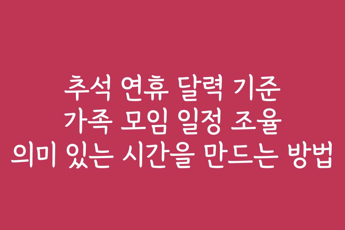 추석 연휴 달력 기준 가족 모임 일정 조율 의미 있는 시간을 만드는 방법