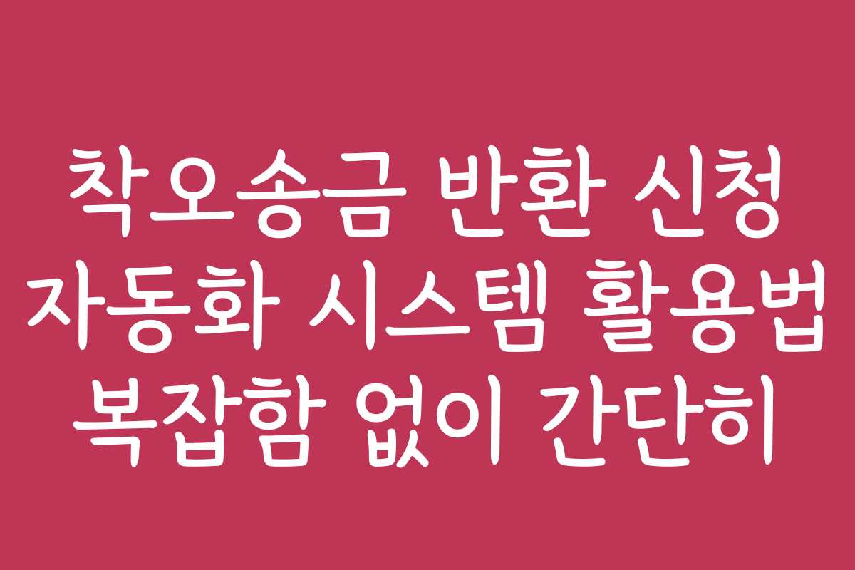 잠깐의 실수로 잘못 송금된 금액, 갑작스러운 고민과 좌절을 안길 수 있습니다. ‘착오송금 반환 신청 자동화 시스템’은 이를 해결할 수 있는 스마트한 방법입니다. 이 글에서는 이 시스템을 활용하여 복잡함 없이 간단히 착오송금을 반환받는 법을 알아보겠습니다.