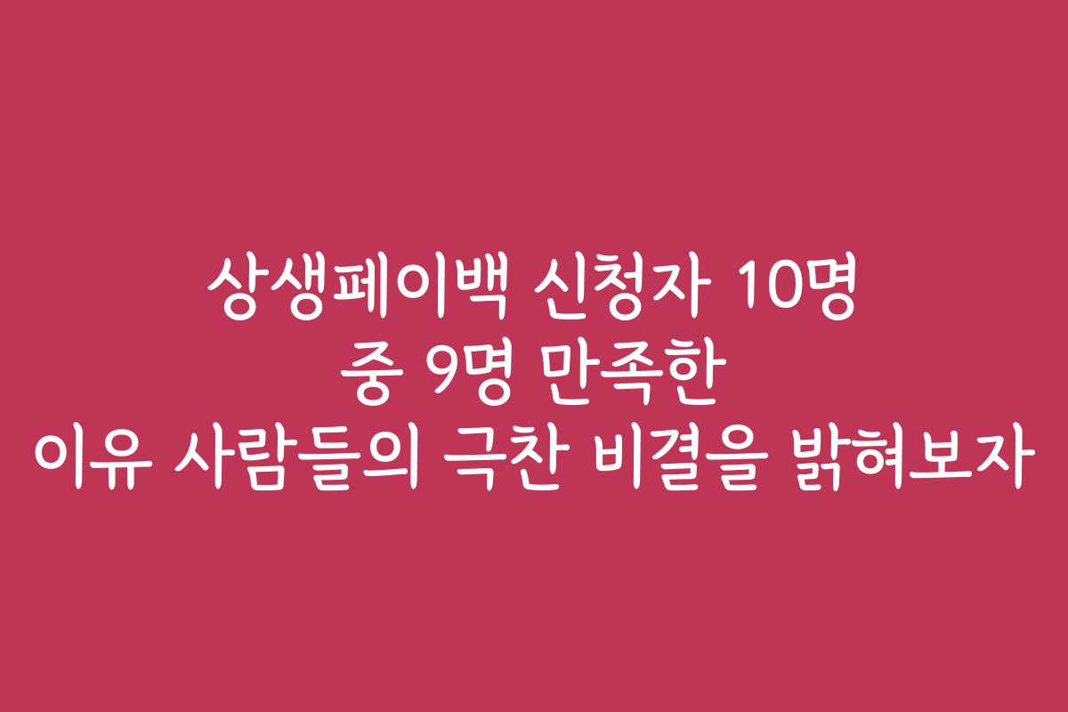상생페이백 신청자 10명 중 9명 만족한 이유 사람들의 극찬 비결을 밝혀보자